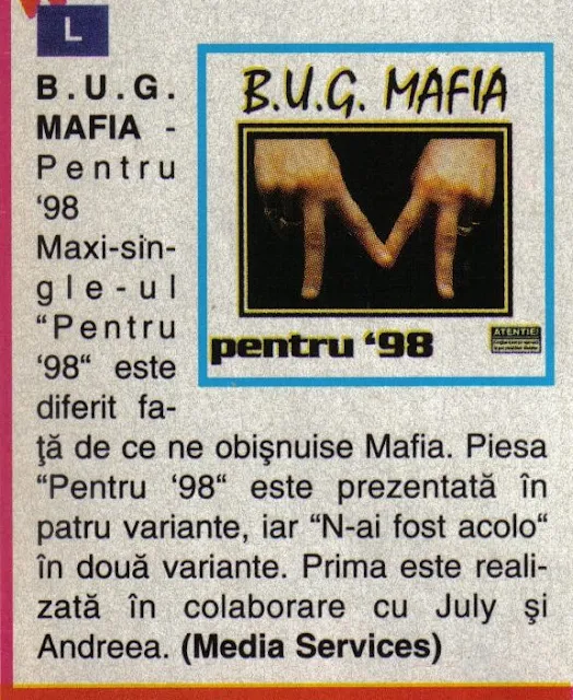 Maxi-single-ul "Pentru 98" este diferit față de ce ne obișnuiește Mafia. Piesa "Pentru 98" este prezentată în patru variante, iar "N-ai fost acolo" în două variante. Prima este realizată în colaborare cu July și Andreea. (Media Services)